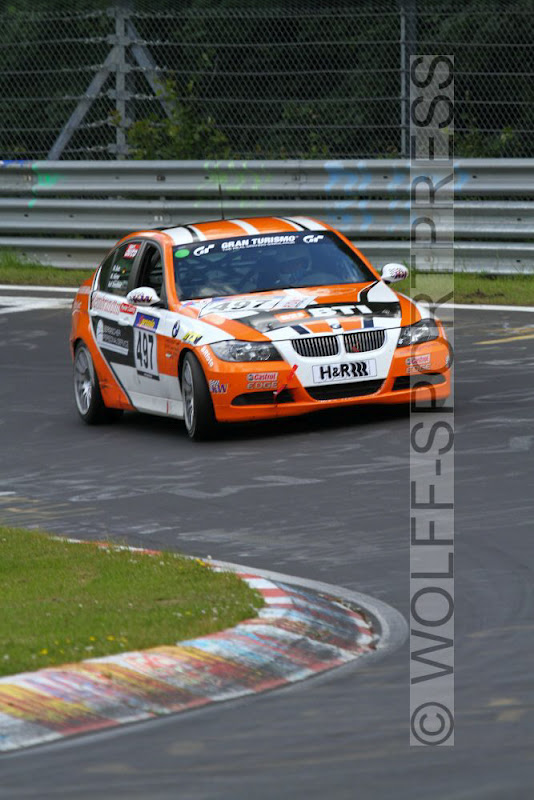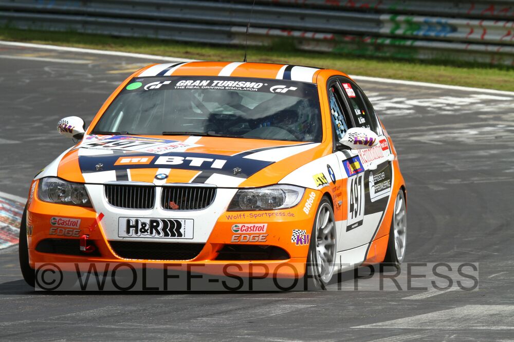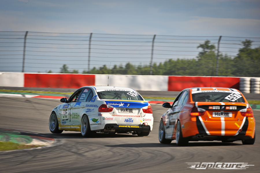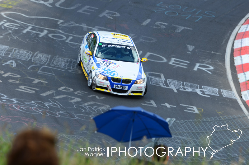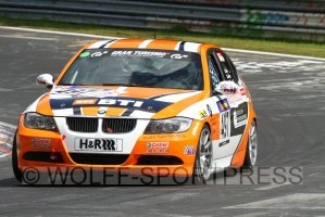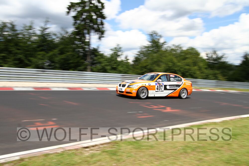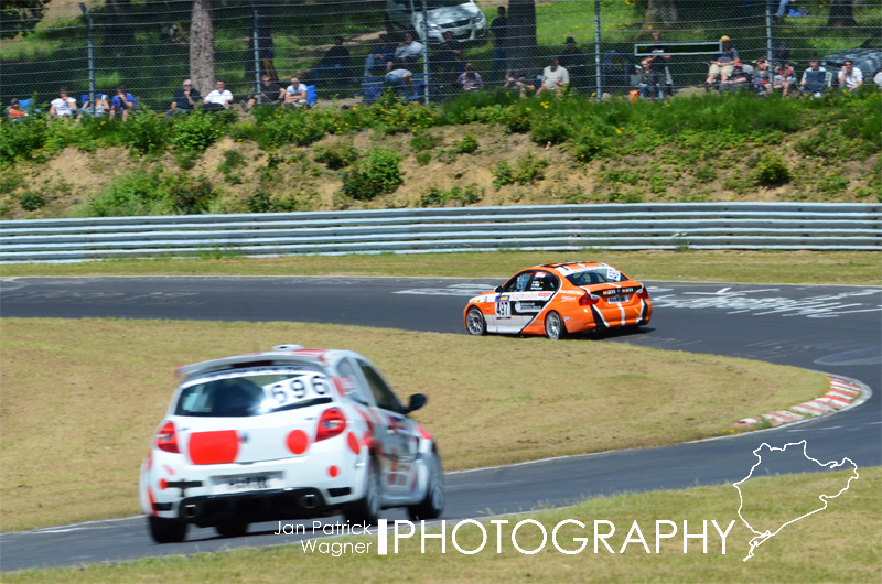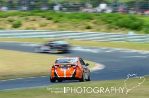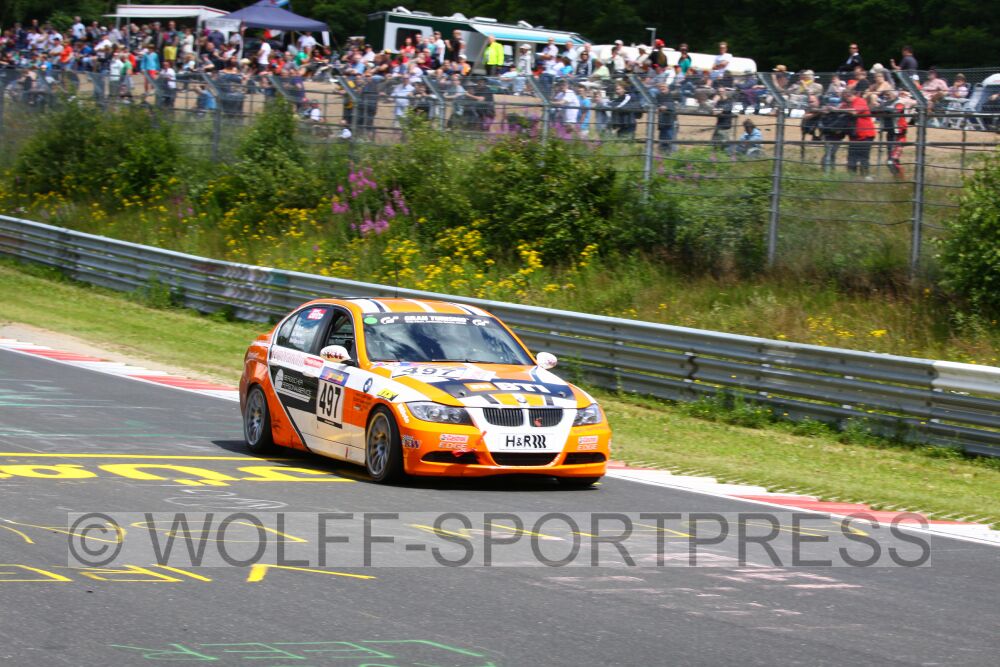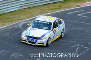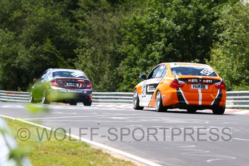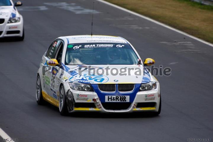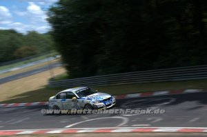 Nachdem das Zeittraining bei teils feuchter Strecke begonnen wurde, gestaltete sich die Jagd auf Bestzeiten zum Risiko. Einige Teams machten schon hier schlechte Erfahrung mit den Tücken der „Grünen Hölle“. Beim Motorsportteam Derscheid galt die Parole: Nicht´s riskieren, das Rennen dauert 4 Stunden! So stand das Fahrzeug mit der Startnummer 515, pilotiert von Rolf Derscheid, Michael Flehmer und Oliver Hönig auf der 5. Startposition der mit 12 Fahrzeugen besetzten Klasse. Auf Rang sechs folgte das zweite Fahrzeug des Team Derscheid, die Startnummer 497, diesmal pilotiert von Matthias Butz, Michael Flehmer und Rolf Derscheid. Sofort nach dem Start kam es in der ersten Startgruppe, der schnellsten Gruppe mit den GT3 Fahrzeugen im Bereich Fuchsröhre zu einer Unfallserie. Michael Flehmer, wie immer Startfahrer der Nummer 515, machte wie immer seinen guten Job, hatte aber während seines Stints einen leichten Kontakt mit einem anderen Fahrzeug. Dies blieb aber, außer etwas Reifengummi des Gegners an der Front ohne Folgen.