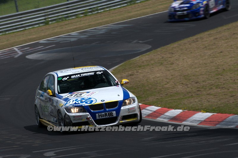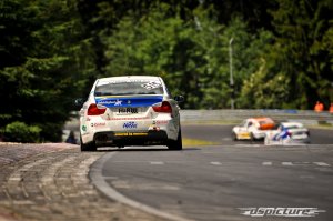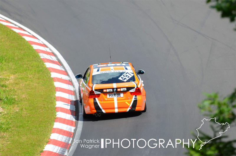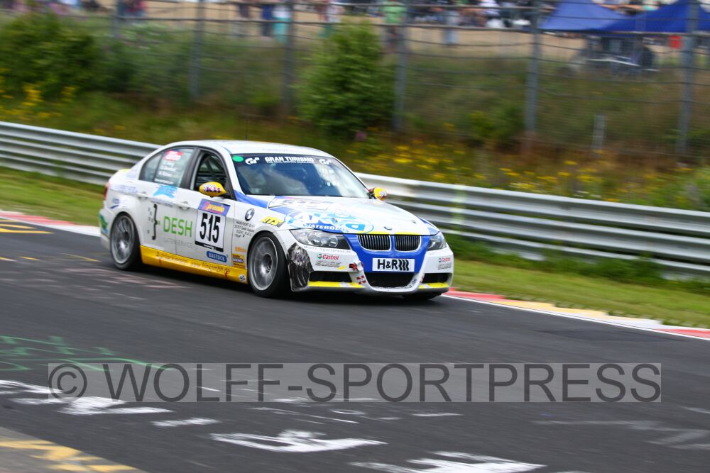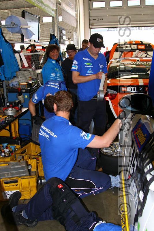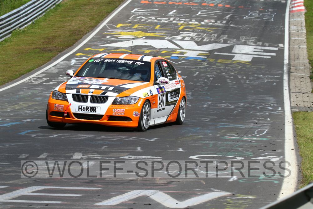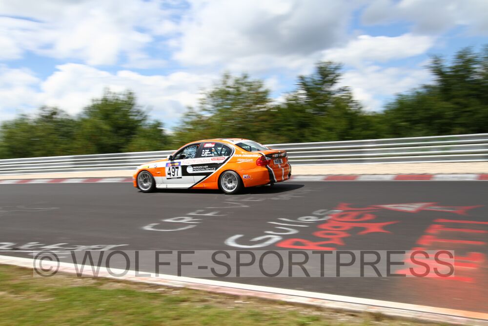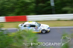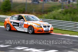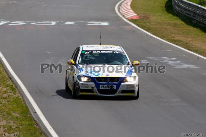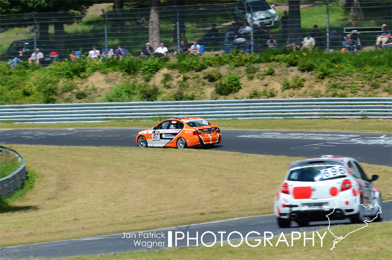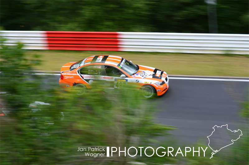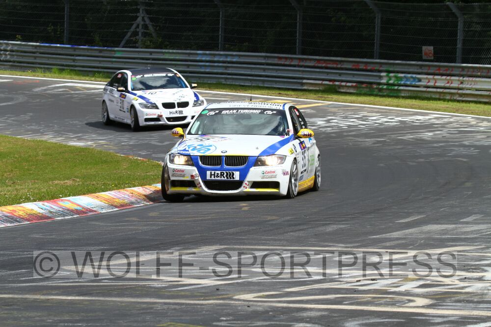 Nachdem das Zeittraining bei teils feuchter Strecke begonnen wurde, gestaltete sich die Jagd auf Bestzeiten zum Risiko. Einige Teams machten schon hier schlechte Erfahrung mit den Tücken der „Grünen Hölle“. Beim Motorsportteam Derscheid galt die Parole: Nicht´s riskieren, das Rennen dauert 4 Stunden! So stand das Fahrzeug mit der Startnummer 515, pilotiert von Rolf Derscheid, Michael Flehmer und Oliver Hönig auf der 5. Startposition der mit 12 Fahrzeugen besetzten Klasse. Auf Rang sechs folgte das zweite Fahrzeug des Team Derscheid, die Startnummer 497, diesmal pilotiert von Matthias Butz, Michael Flehmer und Rolf Derscheid. Sofort nach dem Start kam es in der ersten Startgruppe, der schnellsten Gruppe mit den GT3 Fahrzeugen im Bereich Fuchsröhre zu einer Unfallserie. Michael Flehmer, wie immer Startfahrer der Nummer 515, machte wie immer seinen guten Job, hatte aber während seines Stints einen leichten Kontakt mit einem anderen Fahrzeug. Dies blieb aber, außer etwas Reifengummi des Gegners an der Front ohne Folgen.
