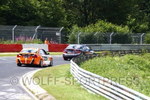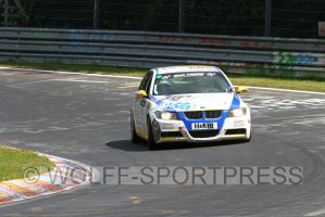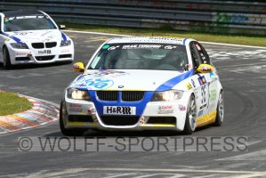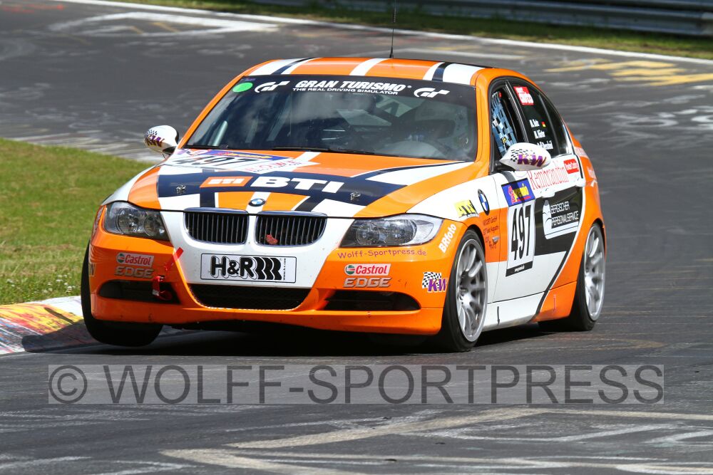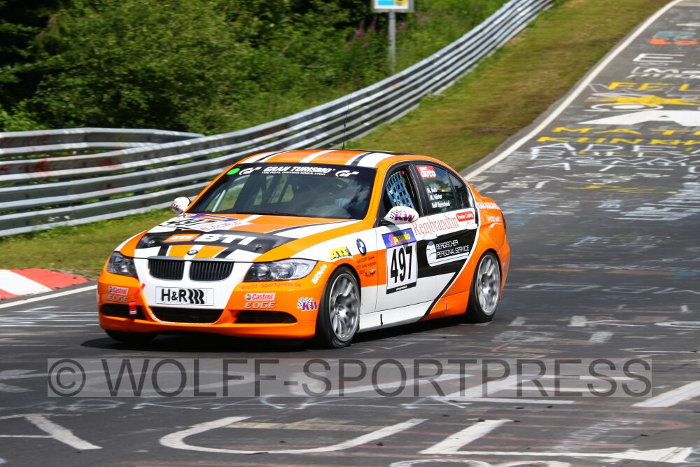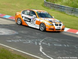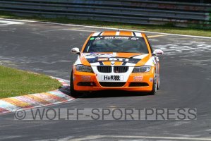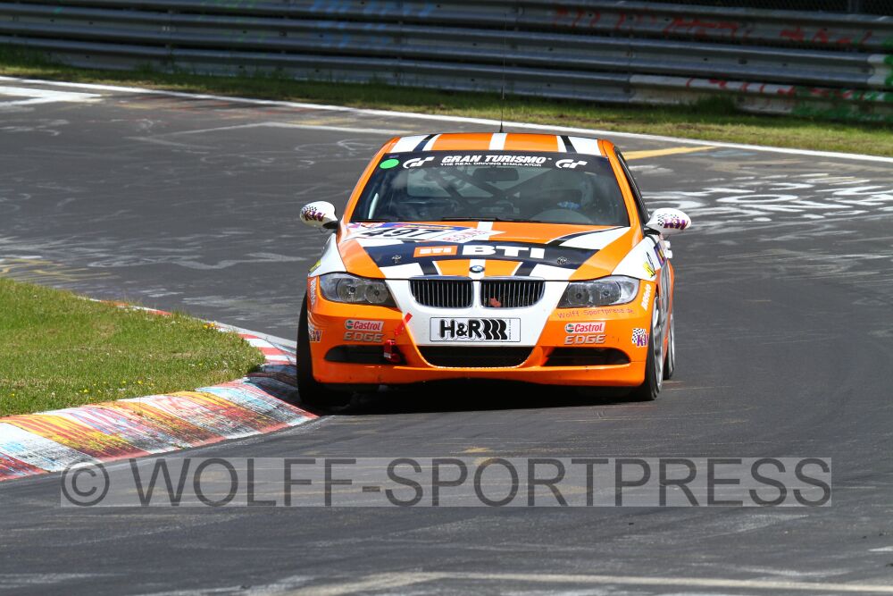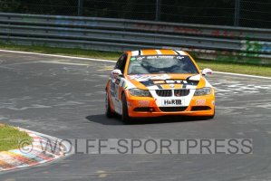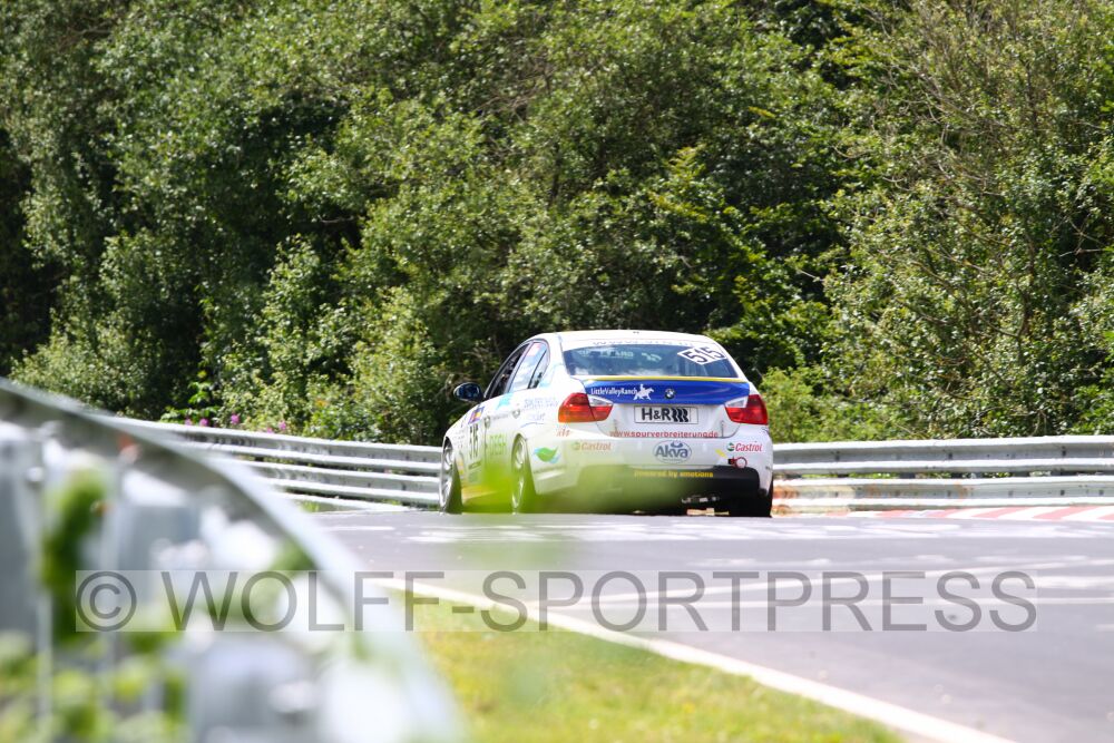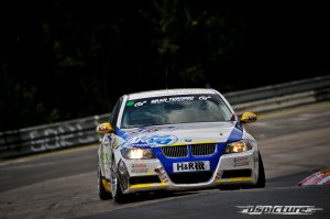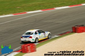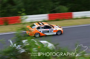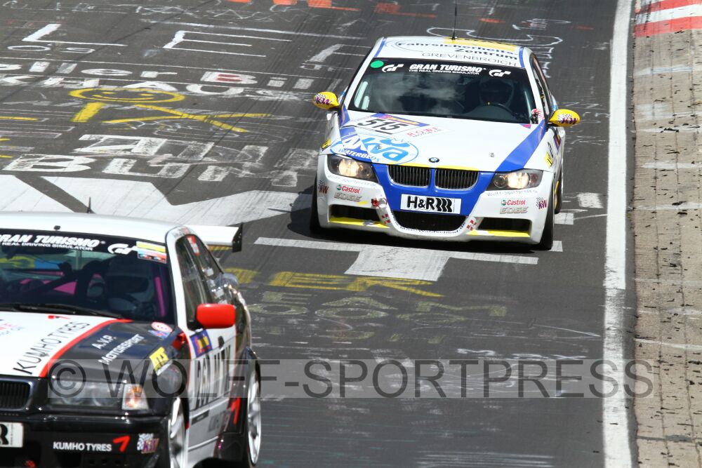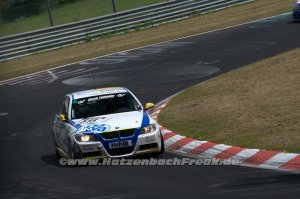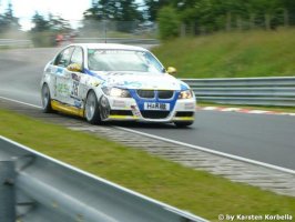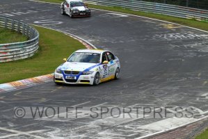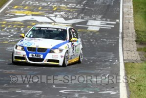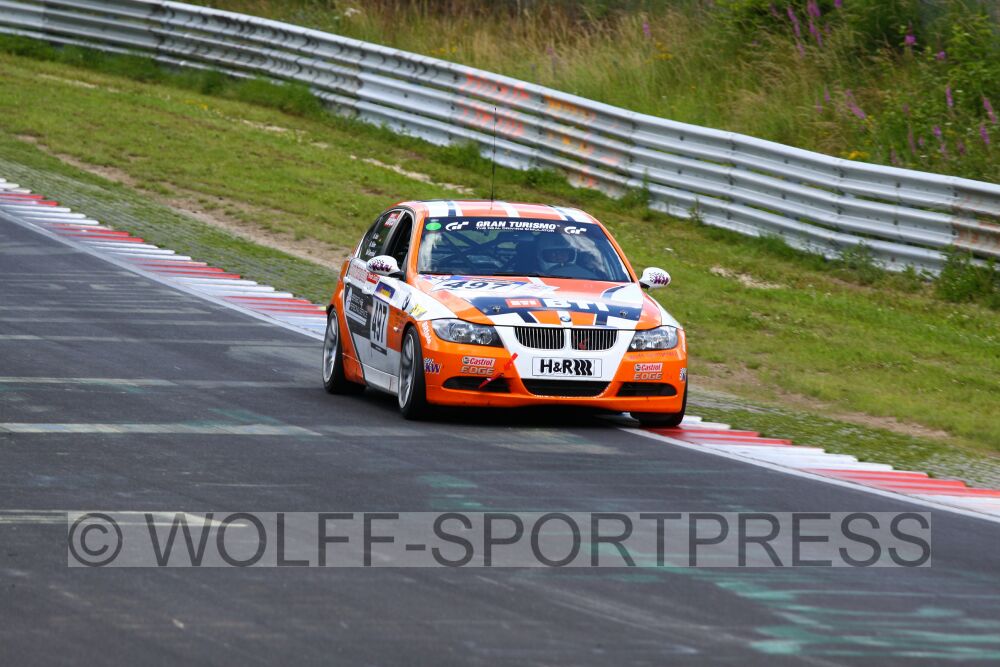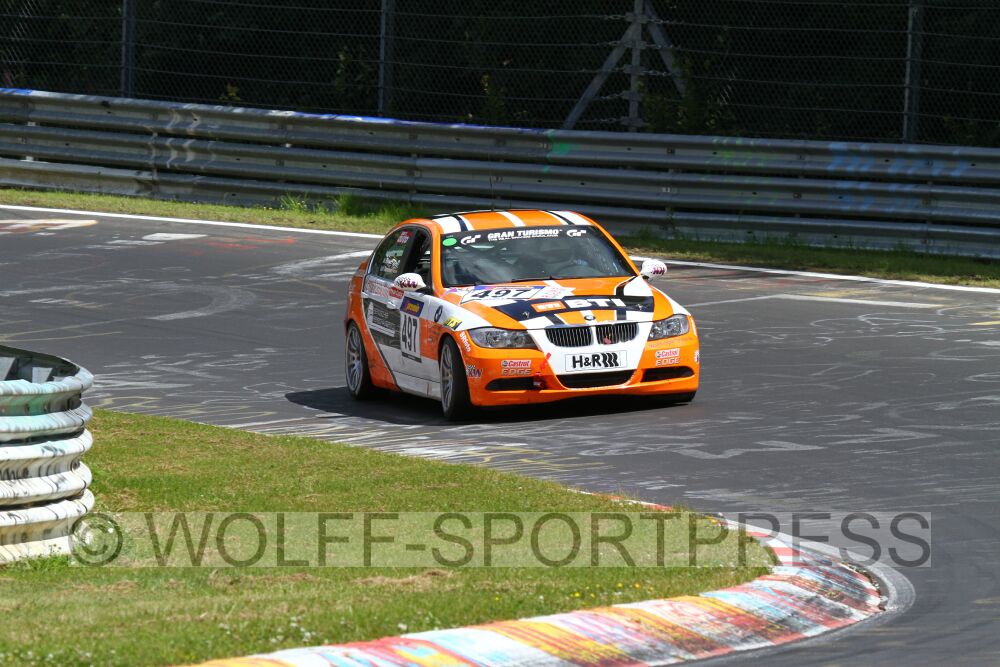 Nachdem das Zeittraining bei teils feuchter Strecke begonnen wurde, gestaltete sich die Jagd auf Bestzeiten zum Risiko. Einige Teams machten schon hier schlechte Erfahrung mit den Tücken der „Grünen Hölle“. Beim Motorsportteam Derscheid galt die Parole: Nicht´s riskieren, das Rennen dauert 4 Stunden! So stand das Fahrzeug mit der Startnummer 515, pilotiert von Rolf Derscheid, Michael Flehmer und Oliver Hönig auf der 5. Startposition der mit 12 Fahrzeugen besetzten Klasse. Auf Rang sechs folgte das zweite Fahrzeug des Team Derscheid, die Startnummer 497, diesmal pilotiert von Matthias Butz, Michael Flehmer und Rolf Derscheid. Sofort nach dem Start kam es in der ersten Startgruppe, der schnellsten Gruppe mit den GT3 Fahrzeugen im Bereich Fuchsröhre zu einer Unfallserie. Michael Flehmer, wie immer Startfahrer der Nummer 515, machte wie immer seinen guten Job, hatte aber während seines Stints einen leichten Kontakt mit einem anderen Fahrzeug. Dies blieb aber, außer etwas Reifengummi des Gegners an der Front ohne Folgen.