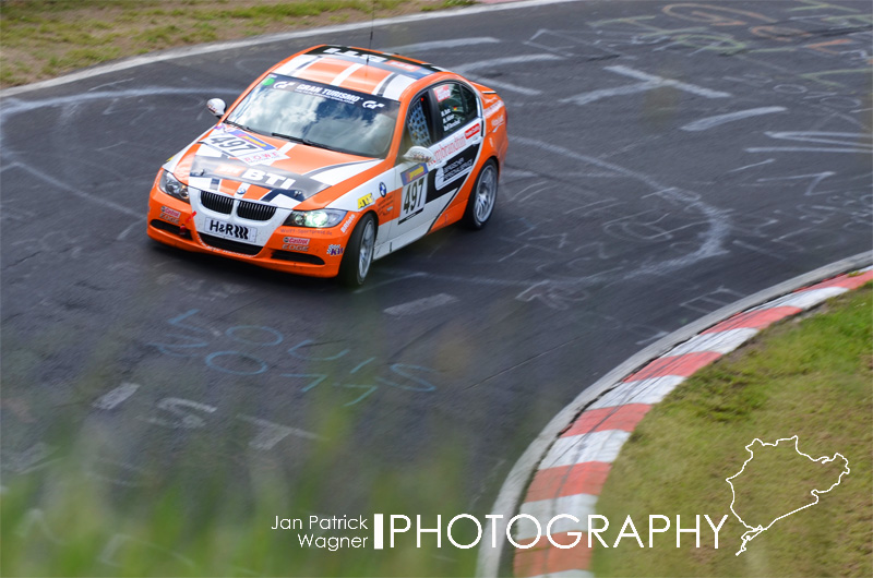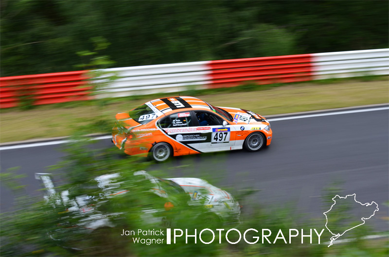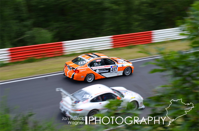 Nun galt es für das zweite Fahrzeug des Teams, der Startnummer 497, bis dahin immer in Schlagdistanz zur Klassenspitze, auf das Siegerpodest zu fahren. Matthias Butz und Michael Flehmer schafften dies, nachdem Sie das Fahrzeug nach der Startphase von Rolf Derscheid übernommen hatten. Bis auf einen Kontakt am rechten Hinterrad, welcher eine verbogene Aufhängung zur Folge hatte blieb das Fahrzeug ohne Schäden und man konnte sich am Ende über Rang 2 in der Klasse V4 freuen.