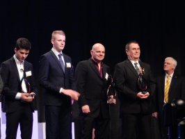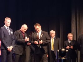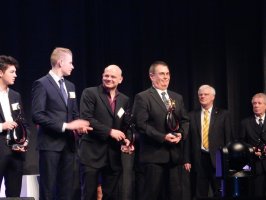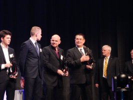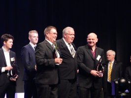 Im Rahmen der feierlichen Siegerehrung, die von Eve Scheer und Jörg Hennig souverän moderiert wurde, übergab der Beauftragte für Automobilsport im ADAC Regionalclub Nordrhein, Alfred Schmitz die  wunderschönen Glastrophäen an Michael Flehmer und Rolf Derscheid.